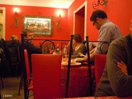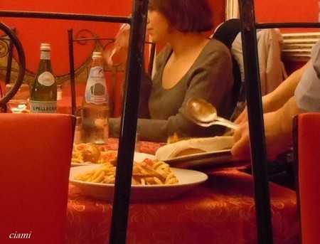 向こうで食べてる女の子たち、お顔はとってもかわいいけど、ナイフの使い方が肉食人種。