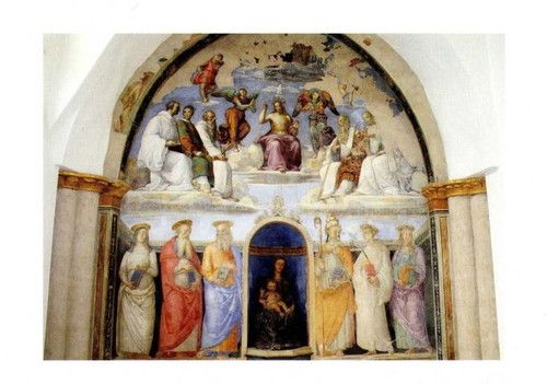 ラッファエッロ の三位一体と、 ペルジーノ の聖母子と聖人たち。