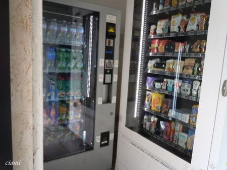 入口は、自販機コーナー。 飲み物やお菓子だけじゃなくって、クリームや歯ブラシ、歯磨き粉なんかも売ってるわ。
