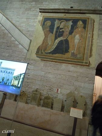2000年ぐらい前までこの辺で使われてた、ウンブリア語がウンブリア文字で書かれてるんだって。