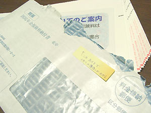 先月のアタマに社会保険庁(東京社会保険事務局共同事務センター)から郵便物が送られてきました。実は去年も、センターから郵便物が届いていました。前の職場を退職したのち、去年4月に今の職場に再就職するまでのブランク期間に国民年金に加入していたので、この期間の国民年金保険料の納付書が送られてきたのでした。このとき送られてきた納付書は2冊で、もう1冊は就職して国民年金加入者でなくなった、4月1日以降1年分(2007年度分)の納付書でした。再就職した4月1日をもって職場で手続きを済ませたので、自動的に国民年金加入者でなくなったはずで、実際月々のお給料から年金分が天引きされているので、2007年度分の国民年金保険料は支払う必要はないと解っているのですが、一応センターに電話し、「職場から社保事務所への連絡にはタイムラグがあるので納付書は発行されてしまうが、今年度分については無視して構わない」旨の回答を得ていました。巷では年金問題がクローズアップされ、転職で年金種別が変っている私としても、自分の年金加入期間に途切れはないかという不安は拭えず、社会保険庁への不信感を持っているので、加入期間分の保険料をすぐに支払わずにいました。支払いの有効期限は2年間で余裕があったので、ゆっくりでいいや、と思っていました。そこへ突然 "社会保険事務所の委託業者" なるところから自宅へ、加入期間分の保険料を支払うよう催促電話がかかってきました。非常に不愉快だったこの件については、去年の6月にココでも書きました。結局、「最低限払うべきモノは払っておかなくちゃ、将来貰えなくなったら困るなあ。ちゃんと払っても貰えない人もいるちゅう、とんでもない事態ではあるが。」と、2006年度の加入期間分の保険料は耳を揃えて支払いました。ところが。半年くらい経った頃でしょうか。また2007年度分の納付書が届きました。で、またセンターに電話しました。「4月1日に就職し、職場の年金制度に加入し保険料も給与天引で支払われているのですが、国民年金の納付書が届いたので、お問い合わせしようと思ってお電話させていただきました。納付書が来るのはこれで2度めで、しかももう就職して半年が過ぎているのですが、手続きはちゃんとされているのでしょうか。」電話の相手の答えは、半年前と同じでした。「職場から社保事務所への連絡にはタイムラグがあるので、手続きが完了するまでは納付書が発行されてしまいますが、無視していただいて構いません。」半年。手続きにそんなに時間がかかるものなのか? と思いつつ、まあお墨付きを貰ったので、相手のおっしゃったように、届いた納付書は破いて捨てました。ところがところが。先月のアタマに、また届きました。「コレはもしかしてもしかすると『ねんきん特別便』なのでは?」と、ちょと思いましたが違いました。またもや納付書。今度は2008年度分です。いい加減にしてくれー。(>__