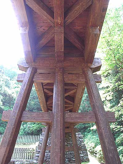 木橋を下から撮ってみました。釘を一本も使わずに造られているようです。こーこはどーこの木橋じゃ?城フェチ・石垣フェチな母が遊びに来たので、「八王子城址」に連れてゆきました。八王子開市400年にあたる平成2年(1990年)に、この曵橋が復元され、御主殿、虎口、石垣、遊歩道が整備されたのだそう。まだ新しく、木の香りが漂います。めちゃくちゃ綺麗に整備されてます。味が出てくるまで何年かかるだろう。石垣もピッカピカ。ちなみに、発掘された当時の石垣はコチラ。↓「なんだかココの石垣の石は小サイズだなー。」と思ったのですが、昔から小さかったらしい。(^_^)ゞさて、この日はとってもお天気が良かったので、わりかし綺麗な写真が撮れました。森林浴日和。心をじゃぶじゃぶお洗濯♪本丸跡。”国破れて山河あり”