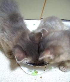 最近、我が家では仔猫用の缶だけに限らず、ミルクや離乳食の味付けに大人用の缶を加えてみたり、ささみをトッピングしたり、大人用のカリカリも好きなように食べさせています。前述したように、離乳食をささみの茹で汁で溶いたりもします。毎日、いえ毎回、違う味のものを与えています。(でも、お腹は壊していないのでご安心を!)