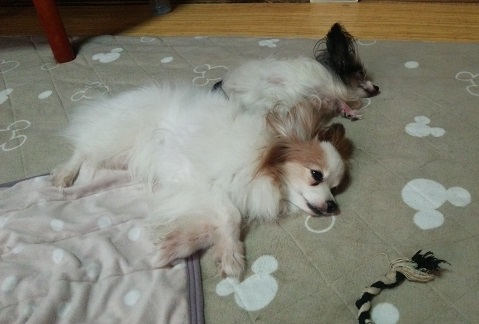 目が合えばケンカするくせにくっついてお昼寝七宝と諭吉