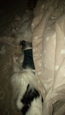 夕寝してた寒くて毛布にくるまって外が暗くなってきたし雨戸、閉めなきゃと、体を起こそうとしたらうっ、重いわんこが私に沿って揃って寝てた暗くて見えずらいけど奥から諭吉七宝胡桃起こすのかわいそうになったから少しこのままでいた