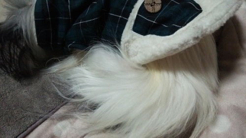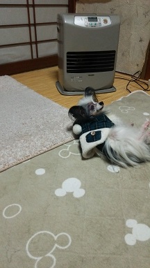 目を離すとファンヒーターに引っ付く七宝そのせいで腰の左側の毛が茶色く焦げちゃったし・・・今日はお利口さんでファンヒーターに引っ付かづ私の側で寝てる・・・・寝てるけど・・・頭の毛・・・チリチリも・もしかして・・・それって・・・