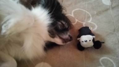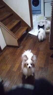 最近、安定してるのかココさんが自分のお部屋から出たがって一階で遊ぶ事があるそーすると、諭吉と胡桃がココさんの後を追っておトイレについてったりして時々、ほかのわんこと接触することで刺激になってもっと元気になってくれるといいなぁ