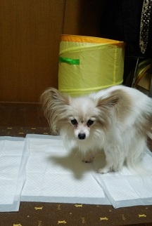 朝ごはん、食べ終わるとわんこ達は和室でお留守番の準備ん?胡桃さん、頭のうえ・・・フードにまぜたササミふりかけでは・・・どーして、そんなところに・・・