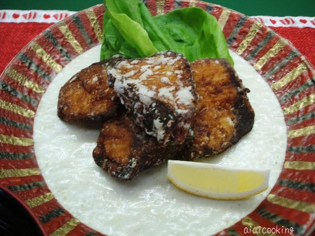 料理教室のメニューは、どちらかというと肉より魚が多いです。季節を感じれるからかなぁ。特に秋は脂にのったお魚の料理が目白押し。「サバの竜田揚げ」を作りました。 サバ以外でも、ブリでもサンマでも合います★材料 ◎サバ(2枚におろして、塩をまぶして出た水分をふき取る=クサミが消える) ◎片栗粉(まぶし用)※漬け汁 酒 ・・大さじ2 みりん ・・大さじ2 しょうゆ・・大さじ3 しょうが・・2かけほどすりおろす ※付け合せ(漬け汁に漬けておく):じゃがいも・里芋 などなど★作り方(1)漬け汁に、食べやすい大きさに切ったサバを漬け込む。(2)サバの汁気を軽く取って、片栗粉をまぶす。(3)170℃の揚げ油で、カラっと揚げる。 ※同じ漬け汁に漬けておいたジャガイモも皮ごと揚げると美味しい。「竜田揚げ」は、醤油や味醂で味付けをして、カラリと揚げること。 醤油と味醂に漬け込んで揚げると、紅葉のように赤色になる。それが紅葉の名所竜田川を連想する。と、ウィキペディア(Wikipedia)にありました。サバも竜田揚げもこの時期にピッタリで、旬を大切にする和食ってイイナって、あらためて思いました。('▽'*)