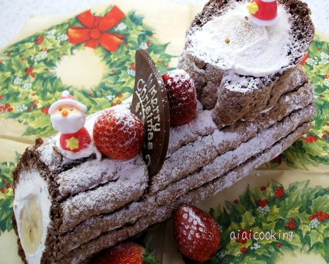 12月に入ってから、料理教室は大忙し。毎日毎日どの講座も多くは、クリスマス料理に、お節料理のメニューが登場で下準備が大変です。1人ワンホールを焼く「ブッシュ・ド・ノエル」の講座がありました。フランス語で、ブッシュは薪、ノエルはクリスマスという意味だそう。クリスマスになると、真っ先に思い浮かびます。 ★材料 【生地】 薄力粉:25g・・・合わせて2回ふるっておく。 ココア:12g 卵黄:2個 砂糖:20g 卵白:2個 砂糖:40g 粉糖・・・・焼く前に生地にまぶす用。 【挟むクリーム】 生クリーム・・・200ml 砂糖 ・・・20g バニラエッセンス ★作り方 1.卵黄と砂糖を白っぽくなるまでホイッパーで混ぜる。 2.卵白と砂糖で、しっかりとしたメレンゲを作る。 砂糖は3回にわけて入れる。 3.卵黄の生地にメレンゲを3回にわけていれる。 4.粉をいれて、泡を消さないように混ぜる、 5.絞り袋で、26センチくらいの長さに13本ほど絞る。 6.生地の上に粉糖をかけて、180度で8分焼く。 7.生地がさめたら、生地を裏返す。 8.中にクリームをぬって、(バナナなどをはさみ、)巻く。 9.冷蔵庫で30分ほどやすませて、飾りつけをしたらできあがり。 ※切ったスポンジを上に重ねる際は、爪楊枝を刺しておくと倒れない。 (でも食べちゃわないように注意。) ワンホール焼き上げるって、うれしくなっちゃう。 みんな満足して帰ってくれたので、がんばった甲斐がありました。