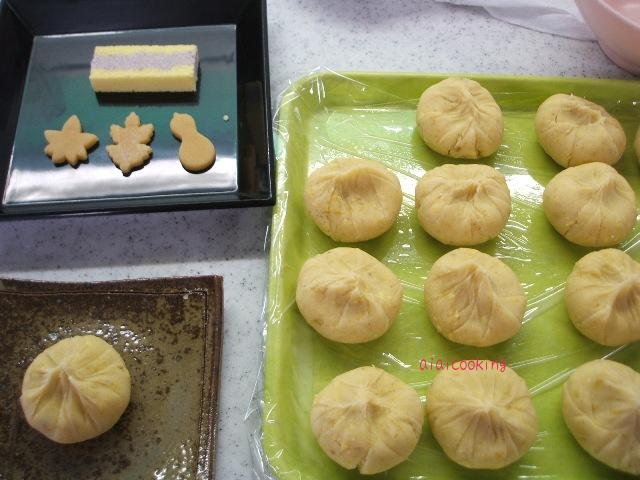 和菓子講座は大好きな先生の講座。クリスマスの和菓子「聖夜」を作りました。グリーンがとてもキレイで食べるのがもったいない和菓子になりました。★材料(20コ分) 中あん ・・160g 白あん ・・650g 煉上用 ・・100g シロップ 適宜 氷餅 ★作り方 1.中あんをまるめる。 2.白あんをみどりいろに染める。 黄色と青色をつかう。 3.きんとんズイノでそぼろ作り、 きんとん箸で杉なりに仕上げ。 4.飾りをして、できあがり。 3.そぼろ作り。 杉なりにしあげ。 和菓子でもアートなクリスマススィーツができました。