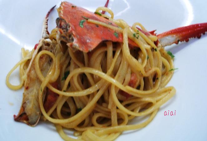 料理教室でのお仕事で、1番の楽しみは、イタリアンシェフから習う講座。助手をしながら、ワザをメモメモ。「ワタリガニのリングイネ」を作りました。ワタリガニは活きがよくって、大暴れ。ハサミを入れる瞬間、足がすくんだ。。。★材料 ワタリガニ・・・1ハイ リングイネ・・・200g 玉ねぎ ・・・1/2個 ミニトマト・・・12個 (1/4にカット) 白ワイン ・・・100ml 【適宜】 ブランデー EX・pureオリーブオイル ニンニク ブロード イタリアンパセリ(みじんきり) ★作り方 1.ワタリガニは、足を細かくカットしてダシにする。 ハサミはそのまま、身はブランデーをふる。 甲羅は外して、ミソを取り出す。 2.オリーブオイルとニンニクをいれて香りを出し、足をいれて炒める。 3.玉ねぎのスライスをいれて炒め、ブランデーでフランベ。 アルコールが飛んだら、ブロードを入れる。 4.別鍋に、オリーブオイルとニンニクを入れ、香りを出す。 ハサミと身をいれて、塩を加えて炒める。 5.ブランデーでフランベし、アルコールを飛ばし白ワインを加える。 水分がなくなるまで、煮詰める。 6.(3)のブロードを濾しながら加え、煮詰める。 7.リングイネと和えて、仕上げにイタリアンパセリとミニトマト、 EXオリーブオイルを加えて出来上がり。ソースは、リングイネとよく絡んで、とても美味しくできました。('▽'*)