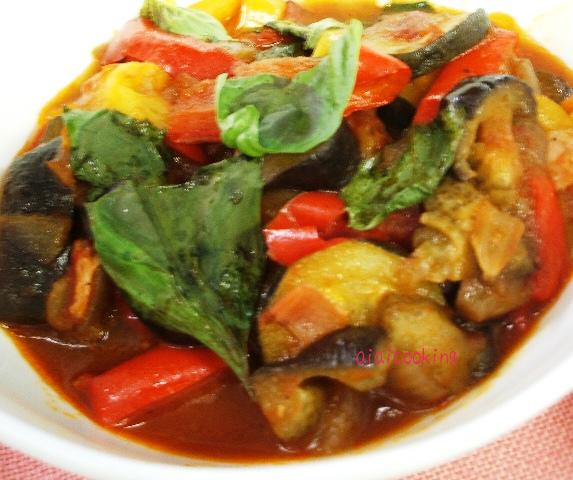 野菜の切れ端がたくさんあるときに、よく作るのがカポナータ。夏野菜でも秋野菜でもなんでも合っちゃうオフクロの味。料理教室でもカポナータは、たびたび登場メニュー。★材料・にんにく(みじんぎり)・玉ねぎ・なす・ズッキーニ・赤パプリカ・黄パプリカ・完熟トマトかホールトマト缶・オリーブオイル・白ワイン(あれば)・バルサミコ酢★ 作り方(1)フライパンにオリーブオイルを入れてニンニクの香りを出す。(2)玉ねぎをいれる。(3)1口サイズに適当に切った残りの野菜と白ワインをいれる。(4)トマトかトマト缶をいれる。(5)コトコト20分くらい煮込んで、塩コショウで味付け。(6)仕上げにバルサミコ酢をたらして、できあがり。カポナータは、イタリア留学中も自炊登場回数1番でした。きのこ類でも、余り野菜がなんでもイケちゃう。意味は、ラテン語の「カウボーナ(居酒屋)」いつお客さんがきてもすぐ出せるように。とか、「capo」の意味が伊語で「雄鶏頭」という意味で、シチリア産の茄子はそんな形だから。など、万博の頃イタリア人に聞いても、はて?って感じでした。なにはともあれ、カンタンで美味しいから大好きです。('▽'*)
