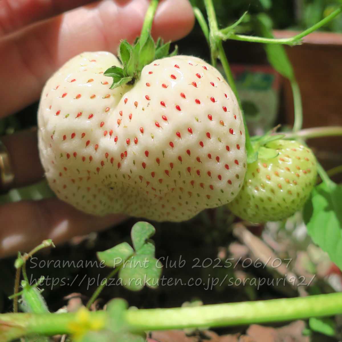 四季なりの白いイチゴ。いつの間にか、こんな大きいのできてました。このイチゴ、食べごろが分かりにくくて。つぶつぶが赤くなってきたのと、香りがしてきたのを頼りに収穫。裏側にちょい虫食いもありましたが、オットと半分こしてパクリ。甘くて美味しかった~まだこれから実りそうなのもあります。虫やナメクジに先を越されないようにしなきゃ…