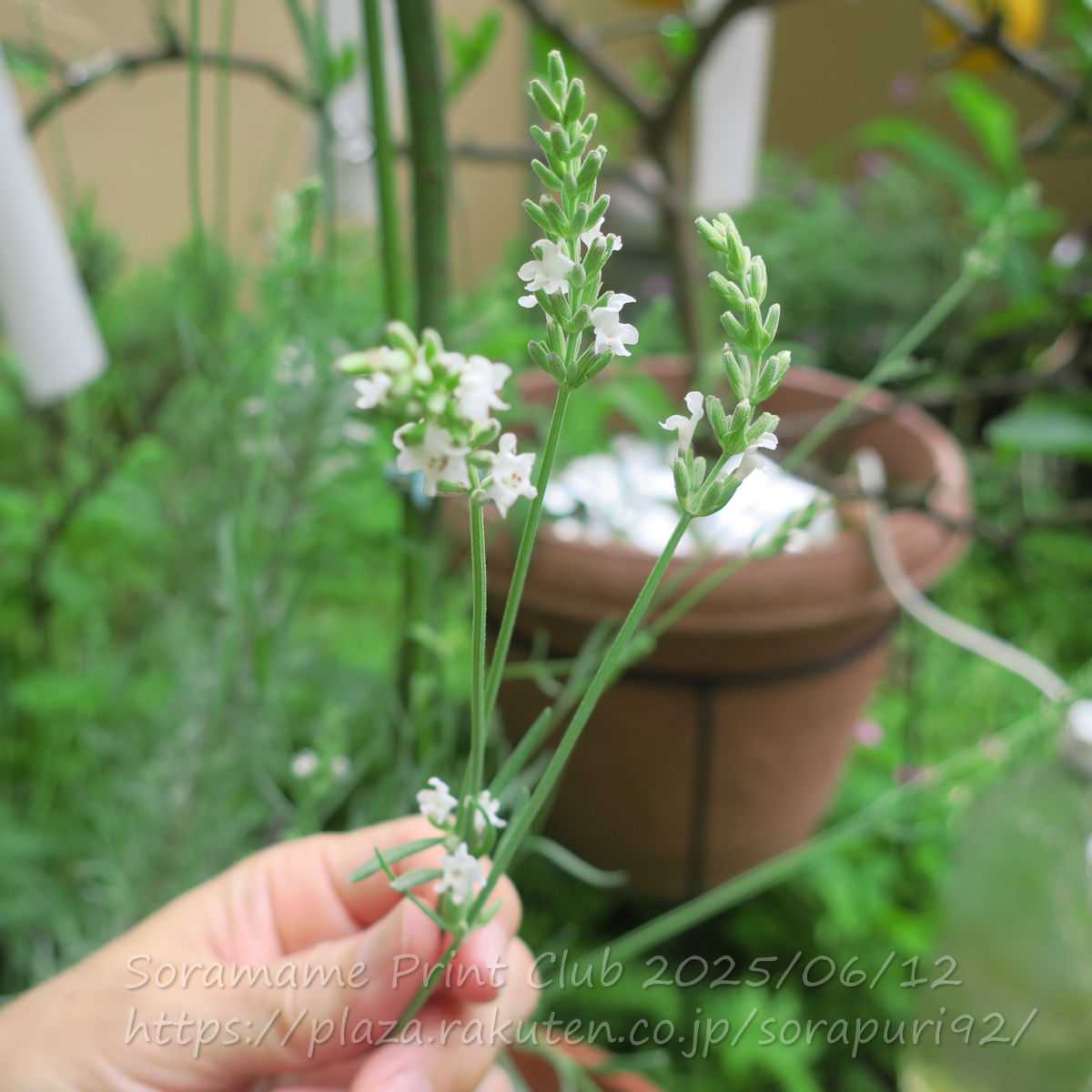 去年植えたけど咲かなかったグロッソラベンダーの白。今年はたくさん花穂をつけてくれました。開き始めたので、少しだけ収穫。束にしてドライにするためにつるしてます。白いイチゴ エンジェルエイトまた蟻んこに先を越されてましたが、甘くて美味~ 香りもいいの。まだこれから大きくなりそうなのは、ダメもとで、不織布の水切り袋をかけました。ブルーベリーサンシャインブルーぽつりぽつり、色づき始めました。まずは、1粒だけ…甘酸っぱくて美味しかったです。これからは、ヒヨドリにも気をつけなきゃ。防鳥ネットするかなぁ。