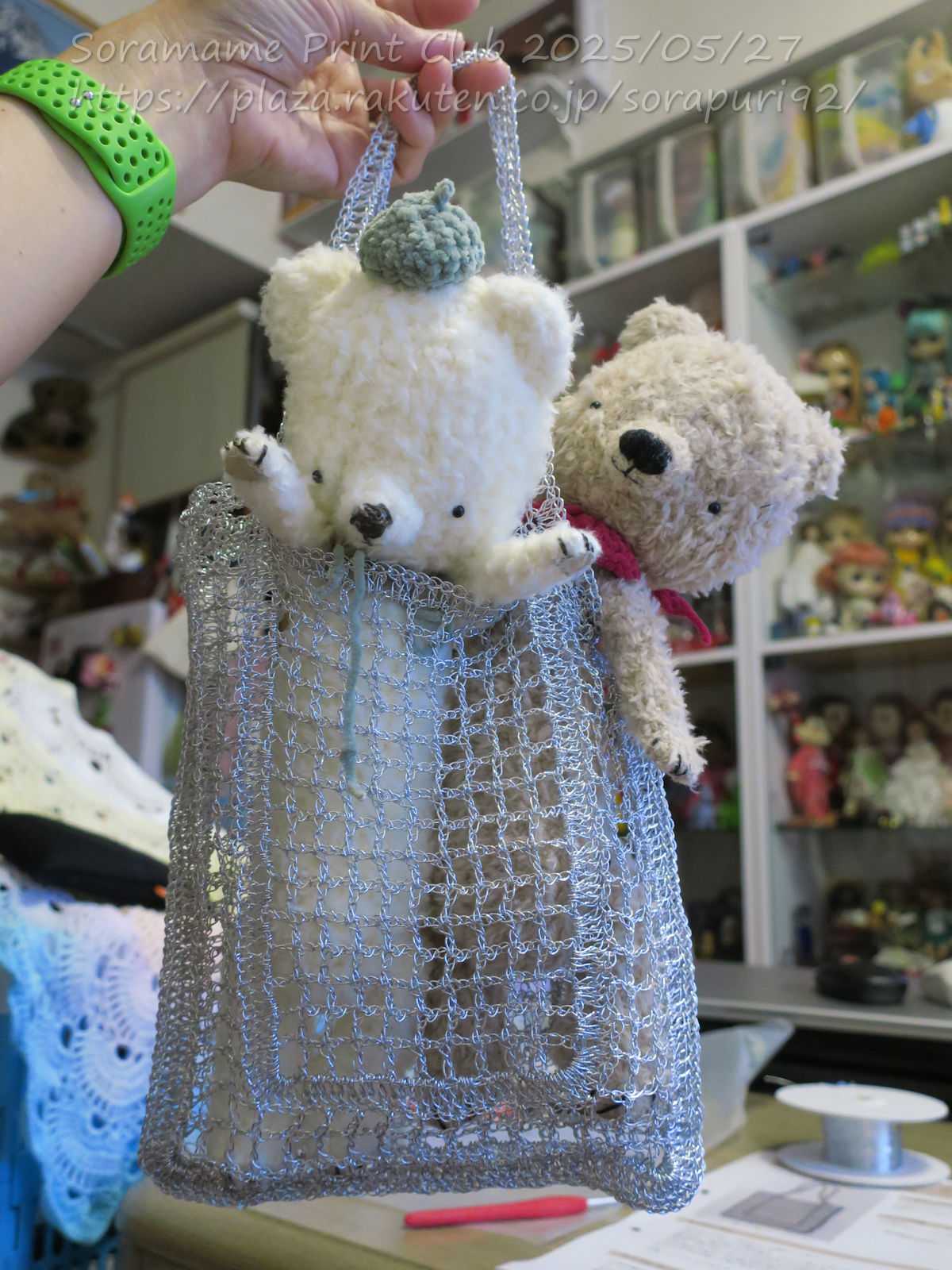 メタリックヤーンのかぎ針バッグ」を始めました。