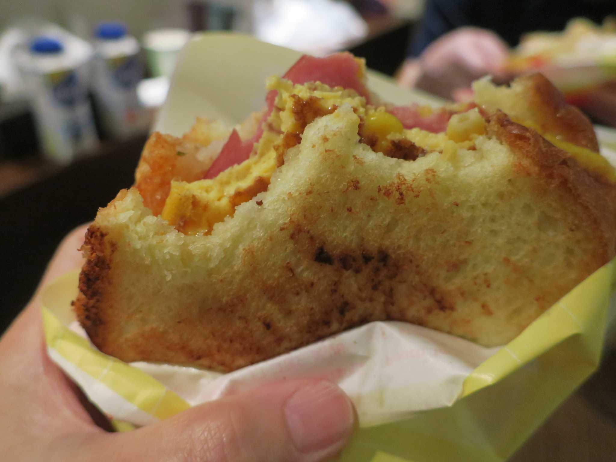 バターを塗った鉄板でパンと具材を焼いて作るトーストサンド。
