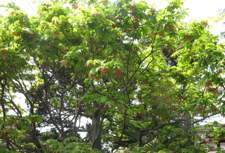 赤羽自然観察園の入り口には、大きな桑の木がある。山梨はかっては養蚕を沢山していた。桑の実のことを「かみず」といい、紫色の実を学校帰りにとってスカートの中に入れたりすると赤紫の汁がつき、かみずを食べたことが親にも分かってしまう。この紫の汁は普通の洗濯のしかたではなかなか落ちず親を困らすことになった。桑の木を自然のままに育てると、こんなに大きくなるんですね。栽培用の桑の木しか知らなかったので最初、桑の木と分からず。園内にもこぶりの桑の木があった。この公園には田んぼもあり、田植えがされたばかりであった。ボランティアの方々が作業をされているらしい。春先に来たときはまだ新緑の森だったが、6月を前にもう青葉に変わっていた。(ジュラ2591さんが調べてくださってナンキンハゼと分かりました。7月の花、秋の紅葉、その後の実といちねんじゅうたのしめるきのようです。)この木の名前は分からないが、新芽が可愛かったので写真に収めた。ちょっとした気分転換に、自然観察公園に行くのは効果がある。緑の中にいると心が落ち着く。昨日も家にいてもなんとなく落ちすかず、思い切ってコンデジだけ持って散歩に出かけた。更紗空木の木が何十本とはなを咲かせていて気分転換になった。また行きたくなる公園である。8時からの開園なので、出勤前ちょいとよってみようと思う。