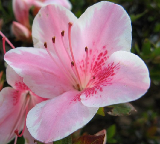 先週から職場の同僚が次々と喉風邪をひいていた。まめに手を洗うし、うがいもしていると風邪をひかない自信があったのに、昨日仕事が終わるころになって妙に倦怠感が。早めに寝たのに明け方から咳が。喉も痛い。久し振りの風をひいてしまった。今朝はだるさで起きられず講習会はキャンセル。今日は一日横になっていた。それでも一日寝たくらいで喉の痛みも咳も良くならず、明日のハイキングも中止してもらうことに。欝でおきられずに休むことがあっても、風邪で休むとは久し振り。週後半少し頑張りすぎたのかもしれない。来週は父の法事で山梨に帰る。せっかく山梨に帰るので、土曜日休んで山に登ることにした。日本二百名山の一座乾徳山。山頂からは360度の大展望。学生時代、追い出し山行の山だった。今日、明日はまったり過ごすことにした。しょうがない、風邪だもの。明後日でで五月も終わり。街路樹の皐月も来月には見られなくなってしまう。小学校の近くの道路際でちょっと変わった皐月を見た。