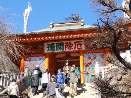 とってもストレートだけど、何か御利益がありそうな文字。晴れた青空に「厄除開運」の文字。ミシュラン効果か、お参りをするにも行列。中国語、英語、フランス語、そのほか分からない言語も飛び交い、とうとう高尾山もインタナショナル。兄の車で京王高尾山口についたのは9時過ぎ。徒歩5分ほどの駐車場まで案内係が配置されている。流石に高尾山、お正月体制で商売繁盛、している。今日は晴れているので稲荷山コース。南面の尾根コースをゆっくり歩いて約2時間で山頂。11時は過ぎているので、富士山も雲をかぶりうっすらと分かるくらい? 肉眼でははっきり見えたのだがブログではちょっと無理かも。尾根コースでは一両の赤い実が見えたり。→十両の間違いでした。一両はアリドウシでした。失礼しました。ジュラさんのご指摘、ありがとうございます。薬王院ではミツマタがほのかに咲き始めていたり。お参りをするにも行列ができてしまうくらいの混みよう。世界平和って、大きな字で書かれているのもインタナショナル。ゆっくり写真をとっているのも迷惑をかけてしまいそうで、早々とリフトで帰ってきた。駅近の蕎麦屋さんでも行列。とろろそばをいただいて、駅に向かうとまだまだ参拝者が沢山上ってくる。私のおみくじは「末吉」。のんびりと頑張れば今年の運は開けそう。学業だけは「全力で頑張るとき」と。呼吸療法認定士の資格も努力次第って感じかな。今年も高尾山にお参りをして、お正月の〆となった。