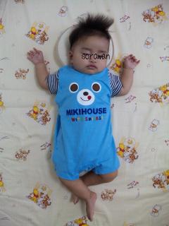 今日は4ヶ月健診に行って来ましたウチのベビは4ヶ月と7日。しっかりした顔つきで髪がフサフサです。産まれて1週間もしない頃から会いに来てくれた人や写メを送った人みんなにしっかりした顔つきだね~と言われてましたが、今日も保健士さんの問診の時に(月齢が)上に見られるでしょと言われました。たまにおっさんぽい表情する時もあるし、早く老け顔になっちゃうんじゃないかと心配です。ずっと可愛いまでいておくれっ健診の結果は順調に成長しているとのことでした。体重:6630g身長:64.4cm胸囲:40.6cm頭囲:42.5cm体重は産まれた時の倍以上になりました。ベビの成長は早いわぁ~今日は西松屋で買った服かイオンで妹に買ってもらった服か迷って、結局、妹に買ってもらった方を着ていきました。会場に着いたら、西松屋の着てこうか迷った服を着てる子が2人ウチも着てたら同じ日に同じ場所で3人・・・。着てかなくてよかったぁ~恐るべし、西松屋でも、かっこよくてお気に入りなんです。↓↓↓最後の1着で80サイズしかなかったから少しだけ大きいけど、その分、涼しくなっても長袖と重ね着できるしこれが使えそう1,313円レビューも300件越え今買うか、涼しくなってから購入するか、迷ってます。