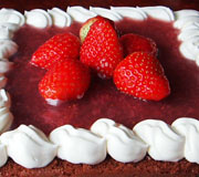 今回は苺とココアスポンジで、角型のケーキを作ってみた。普段より大1ほどココアの量を増やし、共立て式で焼いたスポンジケーキに、苺のゼリーで飾ってみた。全体像が取れなかったので、ちょっとわかりにくいかも知れないが2枚重ねの角型ケーキで、中央に苺が飾ってある。デコレーションのクリームは丸型の口金が合うのだが今回はどこかへ失くしてしまったので、星型口金となった。クリームを隙間無く飾り付けることで、ゼリーの流出を防いである。レシピは後ほど個人サイトに載せる予定なり…