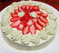 今日は苺が安かったので、抹茶と一緒にケーキにしてみた。ムースと表面に苺を飾り、ケーキ生地とクリームに抹茶を入れてみた。⇒全体像である。⇒断面が見えるようにカットした所。色合いはともかく、結構おいしくいただけたと思われる。どうもカメラのせいか、蛍光灯が悪いのか写真の色が出ていない…実際はもっと緑色が濃いのだが…レシピは後程個人サイトに載せる予定なり。