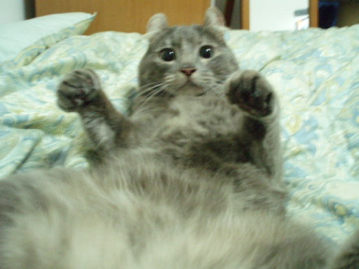 京都のナチュ宅に帰って二日目の夜。昨日は仕方なくナチュと一緒に寝てあげました。いつも枕元で寝てたけど。怒ってたので足元で寝てやりました。ぷんっ。あ~あ~。ナチュ実家は楽しかったな・・・。広いし。カーペットが気持ちいい。ゴロゴロするのに最適。ナチュママがオモチャも買ってくれたしー。毎日走り回って、楽しかったの。走る姿を見てよ。動画:空・走る走るnya ←動画です。クリックしてね♪【ナチュ:まあ、まあ・・・。ナデナデ~☆】うむ。よろしい。もうちょっと耳の裏も頼む。 【ナチュ:もちろんっ!了解でありますっ!!】ほほっ♪【ナチュ:穏やかに。のんびりしようよ~☆】まぁ・・・それも悪くないしねー。【ナチュ:なんとか、ご機嫌とり成功?!】・・・・・・・・・・・・・・・・・・・・・・・・・・・・・・・・・・・・・・・・・・・・・・・・・・・・・・・・・・・・・・・・・・・・【ナチュ:実家で見つけました。ココヤムさん~。】 【ナチュ:原画じゃなくて、ポスターだった。勘違い。】・・・・・・・・・・・・・・・・・・・・・・・・・・・・・・・・・・・・・・・・・・・・・・・・・・・・・・・・・・・・動画で走る空。最後目が回ってるところに注目→ ご機嫌とりに必死のナチュを応援→いつもポチッとありがとう♪よろしくお願いいたします!!