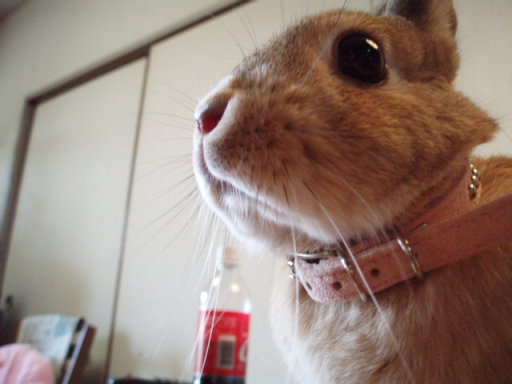 ただいまGW中。ナチュがあの実家に帰るというので、付いてきてあげました。すると・・・・悪夢が。 最強生物と再会してしまった・・・。この方は世にも恐ろし~い小雪さん。ナチュの妹が飼っているウサギ。普段は大阪でナチュ妹と暮らしています。≪小雪さん:そうです。私は強い。えっへんっ!!≫ また、こいつかよ・・・ 勘弁して・・・【ナチュ:お願い・・・仲良くしてね・・・】仕方がないので遠くから観察。【ナチュ:空、あんたは小雪に対していつも低姿勢・・・気弱っ!!】ヤツが動いたっ!!来たっ!やばいっ!!ぎょえ~!避けねばっ~!!≪小雪さん:バシッ!ちょっと脅してやるぜ!!≫【ナチュ:お二人とも~楽しそうね・・・仲良くしてね・・・】 ちっくしょーあいつめ。やっぱし凶暴。要注意nya!! およっ?なんか落ちてる~これ何? 【ナチュ:それは小雪さんのオヤツ。ニンジンだよ。】ふっふっふっ・・・♪横取りしてやるぜっ!!【ナチュ:別にいいけど・・・ニンジン美味いの??】