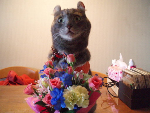 ナチュの実家で暮らすこと11日目。昨日、ナチュとも再会。今日は母の日らしい。ナチュよりナチュママへ花束。 【ナチュ:さーて。そろそろ京都へ帰らん?】 へ?!京都へ・・・?だって。だって。ナチュママ大好きなの・・・。もうちっと。もうちっとだけ・・・。 【ナチュ:はいっ、却下。強制送還。京都っ!!】・・・・。【ナチュ:ただいま~。空~、懐かしの我が家ー♪】・・・・。ギロギロリンッ!! ムッツリ・・・。知らん振り・・・。【ナチュ:泣。】