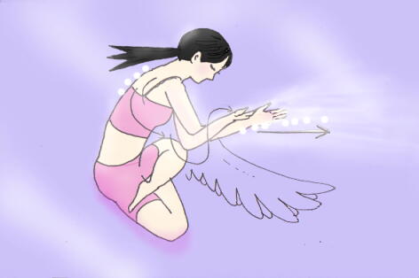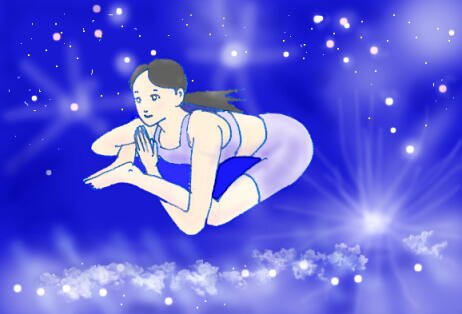 オリエンタル・エンジェル、飛天(天女)のポーズです。 と言っても、空を飛ぶわけで無く 寝転んで床の上に形を作る、 楽々な天女のポーズ♪(広池ヨーガ系のポーズです。)VenusYoga しなやかな女神になるヨガYoga Pose No.21 飛天のポーズこのヨガポーズ、飛天のポーズで羽衣をまとった天女(てんにょ)になりましょう♪半分の後ろに寝た割り坐(スプタウィラーアサナ)で、内に折り曲げている脚の膝の上にもう片方の足乗せます。そちらは外へ膝を開きましょう。 お尻を床に沈め、股関節から、腰の中を刺激していきます。 内に曲げた太ももの前面、 外に開いたふとともの内側が気持ちよく伸びていきます。両手は空を飛んでいるように横へ伸ばし肩が浮かないようにしましょう。 頭の方に伸ばして、両腕で円を作り、背伸びするのも 気持良いです♪上から見れば、飛天(ひてん)天女が空を悠々飛んでいるように見えまーす。寝転がっている床が、飛天の飛ぶ青空に今変わります!♪ *参考 奈良の薬師寺東堂の水煙や 法隆寺の金堂壁画に天衣を翻して飛ぶ 飛天を見ることができます。VenusYoga INDEXへ