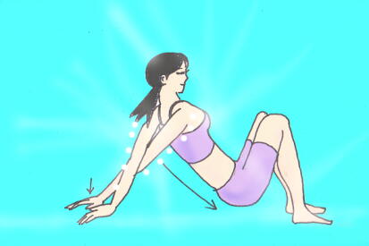 肩の柔軟性はヨポーズだけではなく、日常生活でもしなやかな動きをするのに大事ですね。まず肩こりなんかしなくなります。今回はちょっと、きついポーズかもしれませんが、飛びっきり肩、肩甲骨をふくめた背中上部に効く、私のオリジナルヨガポーズお教えします。1 膝を立てて坐り、腰の後ろに手をつきましょう。 指先は後ろを向けます。2 そこから、腕を後ろで交差し 親指側面が、くっつくようにして 床にぴったり手のひらを置きます。3 じわじわ、腰を前方、両足に向かい送り出します。 腕と背中の角度が開いていきます。 肩甲骨が、背骨から浮き離れていきます。 *肩甲骨全体の自由な動きがレベルアップしますよ♪4 両肩を後ろに引き、左右の肩甲骨を引き寄せましょう。5 そこで、静かに呼吸、肩、背中の刺激を味わいます。6 ポーズを解いて、息を吐き出しながら、 背中を丸め、両腕で膝を抱えてリラックス~~♪ 手の交差を逆にして、もう一度行ないましょう。今回は、私のヨガの方法、後ろ肩編でした、次回は前面編を紹介します。