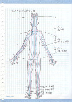 今回のヨガ指導者養成は、実習として三角のポーズ(トリコーナアサナ)、ねじり三角(パリブルッタトリコーナアサナ)、卍のポーズ(横に寝た片足の弓のポーズとねじりの複合)。講義(五味先生)は、足の反射部位として、リフレクソロジーとツボ経絡の刺激法を習いました。湧泉足三里承山委中・・などこういうのが入るから沖ヨガはヨガじゃないとも言われるんですが、(笑)ヨーロッパで発達した反射ゾーン療法(リフレクソロジーはその一種)も、もとはインドのアーユルヴェーダの考えや世界各地の民族医療の元を見れるものですし、中国医学の経絡もヨガの、ナーディの考えが元になっていると言われています。シルクロードの文化の道が、いろんなものを伝え最終地日本において結実し花開いたようにヨガも中国で導引術、気功として発展したり日本の瑜伽(ゆが)として形作られました。仮に私は、これをシルクロードヨガと呼んでいます。そのシルクロードヨガとして日本ヨガの天風ヨガ、沖ヨガ、広池ヨーガなどがあります。これらは、いろいろなヨガ以外の東洋健康法を取り入れ形作られています。特に沖ヨガはそうです。東洋の健康法と修行法の集大成が沖 正弘先生のつくられた沖ヨガです。インドのヨガではなく、シルクロードという道を経て熟成されてきた日本のヨガです。インドヨーガ派からみた批判要素に対し、私は以上のように説明します。さらに沖先生の愛弟子であられた、龍村先生は、気功、呼吸法の要素を多く取り入れた、エネルギーワークを教えて下さっています。先生は”オリエンタルエクササイズ”という言い方をされています。かつて本部道場で習った、きつ~い神経にびんびん響く修正法から気功的な要素の、エネルギー”氣”を動かす修正法へと龍村先生のは変化しているようです。こういう沖ヨガ的なもの、”シルクロードヨガ”は、万人の健康ヨガとして、体の硬い人や、年配の方、体の具合が悪い方いろいろな人に対応できるヨガであると思います。足の操法で、気持ち良くなり、体が柔らかくなる♪耳の操法で、腰の動きがスムーズになる♪「さっきより楽にヨガポーズができた!?」お年寄りにもできる健康法から入れるヨガです。こういう、これからの高齢化社会に対応できるヨガを考えて勉強していきたいです。パワーヨガはきついと思う人でも、呼吸体操や気功を結びつけたヨガなら気持ち良く動いてヨガできますね。フィッツゲラルドの反射ゾーン図Mind and body RefreshingYOGA NOTEBOOKシルクロード・ヨガ 補足:佐保田鶴治先生の佐保田ヨーガも、インドヨーガのヒンドゥー教要素を 仏教的要素に置き換え日本化されています。(批判じゃないですよ。分析です。) 文化融合の強い日本において、日本化されないのは、 厳密なメニューを守り呼吸の数さえ決められているヨガ アシュタンガヨガなんだと思います。 ただし”ケンハラクマ先生”がつくられたラジヨガとか スローフロウヨガでしたか、日本的変化の兆しかも知れません。