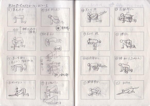 絵コンテノートに、ネコのポーズのバリエーションの連続動作メニューを書いてみました。ヨガネコメニューです。14の動作で体を柔らかくしなやかに調整していくものです。こういうのを朝の少ない持ち時間でやって家を出て、電車に乗ってから描いています。だからきれいな絵や字ではないです。(笑)今日もこれから仕事に出かけ夜中一時過ぎに家に戻ります。電車の中でヨガの本も読んだりします。きのうはこういう言葉を見つけました。佐保田鶴治先生のヨーガ講話を採録した本「ヨーガ道禅話」からです。「死ぬまでヨーガをやってやろうと自分の生きている中心にヨーガを据えて毎日必ずヨーガの体操をやる。また瞑想をする。どんなにいそがしくても、いくらかの時間を投じて、一生涯やろうという人のことを私はヨーギーと名づけるんです。」ヨーガ道禅話 佐保田鶴治 人文書院佐保田鶴治先生のいうヨーギーに自分を近づけていきたいです。 Mind and body RefreshingYOGA NOTEBOOKヨガ絵コンテ☆ネコのポーズバリエーション