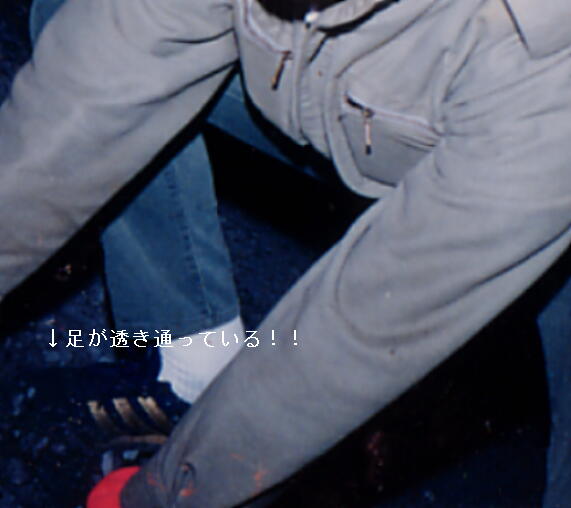 なんと!足が透き通って、足の場所に地面のジャリが映っています。