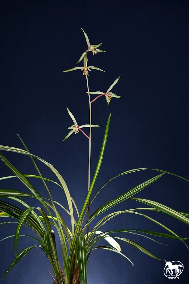 本年度の寒蘭本花会撮影終わりました。 今は、ほっと一安心をしています。 花は後ろを潰せ・・・。 雑誌などで、風景撮影の仕事をされている先輩写真家から教わりました。 今回ですが、ベタの背景では無く、立体感を出して欲しいとのご依頼でこの様に撮影してみました。 ストロボの出力に注意して撮りましたが、寒蘭ですがやはり難しい花ですね。 バリエーターの僅かな調節にも微妙に反応します。 この花の持つイメージも大切です。 遠く南より、黒潮に乗って蘭は日本に定着しているのだそうです。 少し、じめっとした所でひっそりと咲いているそうです。 私は、東洋蘭に、月明かりのような僅かな光の中で、幽幻とし浮かび輝くイメージを持ちます。 西洋蘭のような、華やかな晴れがましい物ではなく、暗闇の中で、強く、凛とした華厳のイメージを持ちます。 自生のものは、未だ見たことがないのですが、じめっとした所のイメージで後ろを陽炎のようにぼやかしたいと思いました。 これは、画像処理ではありません、ライティングによる表現ですからフィルムでの撮影に同じです。 背景の素材や反射を考えてセットを組んでみたのですが、、如何でしょうかねぇ、、。 本年度より、関西東洋蘭界では最も歴史ある関西寒蘭会の専属写真家として会誌素心の撮影担当となりました。 会を司る会長は蘭の世界では、唯一受勲もされている渋谷 博さまです。 引退された先輩写真家の方に心配をかけぬよう、頑張らねば、、。 心の勉強、、しますね、、。