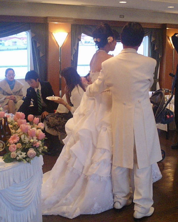 友人が!!神戸はメリケン波止場へ行ってきました。船上での披露宴は初めてだったのでワクワクしました。ホテルにはない味がある!!このワタクシめは感動しましたわ。なんせ急にウルウルくる事が最近多くなった。特に花束贈呈は何回見てもいもんだ!!あにきに先日「周りは結婚しているからあせるやろ?(・∀・)ニヤ」と聞かれた。この手の事を最近よく言われてしまうがわたくしはホント焦らないんですわ。肉体的・精神的にまだ19のままですわ(爆)まあコレばっかりは縁だからね。気ままにやりますわ。金の斧で未来を開拓していってくれたまえ本日はおめでとう