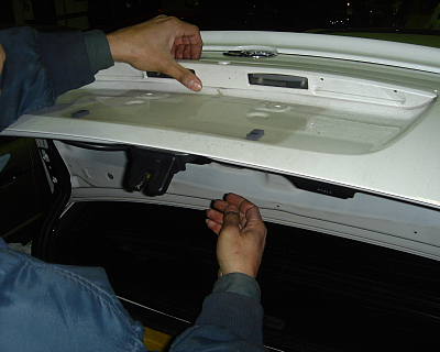 お嬢より頂いたパーツを取付けます。いつもお世話になってる福ちゃん自動車で! リアナンバー取り外します。封印のはずし方は封印です!(爆) 脱脂綿で拭き拭き! 鍵穴はずす! まず、リアガーニッシュ取り付け!メッキになるので高級感が出ます。アクセントによろしい。 アルミシールで穴を塞ぐ位置決め中!慎重に行っています。さすがに丁重です。B4乗りのけいじ君!寒いけど(*゚Д゚)がんがれ イカツクなりますた。ライセンスプレートがより傾斜が付きいい感じです。写真では解りにくいかな? パールにカーボンもまたよろし!ピラーはカーボンだからアクセントに味が出ました。お嬢とおそろいです!♪ここまでの所要時間は約50分です。手馴れたもんです!あとはCピラー部にエンブレムを貼るだけ(・∀・)ニヤニヤ
