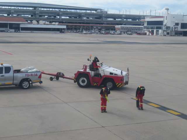 地上の整備スタッフがお辞儀をして送ってくれます。こんなに丁寧にお辞儀してくれるのはあまり見かけたことがありませんでしたが。