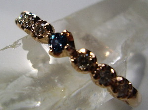 ベーネ・ベーネさん の廃盤アレキサンドライト・リング。木曜に届きました。これが…箱を開いてなかのクッションを取ったとたん、笑っちゃうくらい「ちっさーー!」でした。2mm サイズなので、致し方なし。画像では、青が強めに出てますが、実際にはもっとグリーン寄り。ナミビア産トルマリンのブルーグリーンをもっと濃厚にしたかんじです。小さいのに、全然薄くない。ルーペで見ると(小さいので見辛いけれど)、透明感もあって。アレキならではの色変わりも敏感。白熱灯を当てると、華やかめのヴァイオレット。光の加減によっては、ブルーグリーンにヴァイオレットが混じるのもたのしい。でも、リングとしては細すぎ。幅も高さ(厚み)もありません。ダイヤもきれいなのに、このリングではあまり効果的とは…。アレキをたのしむのにも、ルーペ必須。よかったのは、「いいアレキ」が見られたこと。これを指標とすれば、もしつぎにアレキを買うときに、じゅうぶん役に立ってくれるでしょうから。こんなアレキなら、10万以上でも欲しいひとがいるんじゃないかなぁ。ルース価格は予想がつかないけれど、収縮色だから 4mm はあってほしい。ダイヤは不要で…などと思ったり。PG にしてみた地金。ダイヤの白があるぶん、すっきり系でなくエレガント寄りというか。アレキと合わないわけではないけれど、このリングではバランス的に、正直わたしの好みとズレました。でもまあ、だんだん目が慣れてきて、これはこれでいいか…と。大きさのせいなのかどーか、アレキ Love!には至らず。一安心。