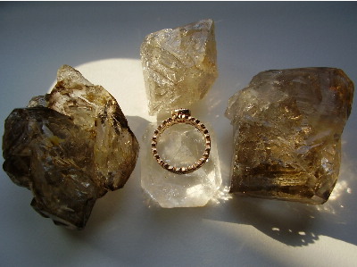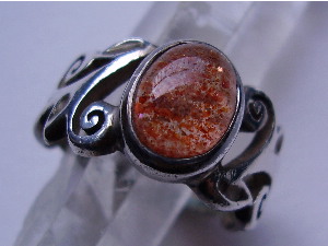 過去形の理由は、「もう着けられない」。中石はサンストーン。唐草モチーフの地金はシルバーです。石の横顔。厚みが偏ってるの、判るでしょうか?これ、磨り減ってしまったんですね。数年前愛用していたころ、こればかり着けてたので。サンストーンの硬度は 6。長石なので、ムーンストーンやアンデシンと同じです。これはカボションだから、一見目立ちにくいかな。こういう覆輪カボション、ついつい指が撫でてしまうみたいです。手を洗ったりするときも、指輪はほとんど外さない。で、ハンカチでも擦ることになってしまう…。さらに、この歪み。2枚画像をならべると判りやすい――。 このリングをしまいこんだときのことは、すっかり忘れてしまったけれど。毎日のように使っているうちに、ちょっとずつこんなふうになってしまったのでしょう。使えないけど、捨てるに捨てられない――。ま、コンディションがよくても、いまは好みが変わって、やはり着けられないと思います。でも、決してゴミではないし。どーしたものか。ずっと保留中のリングです。