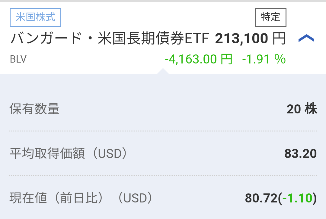 今後の利上げの影響でさらにBLVが下落するかもしれませんので、様子を見て焦らず