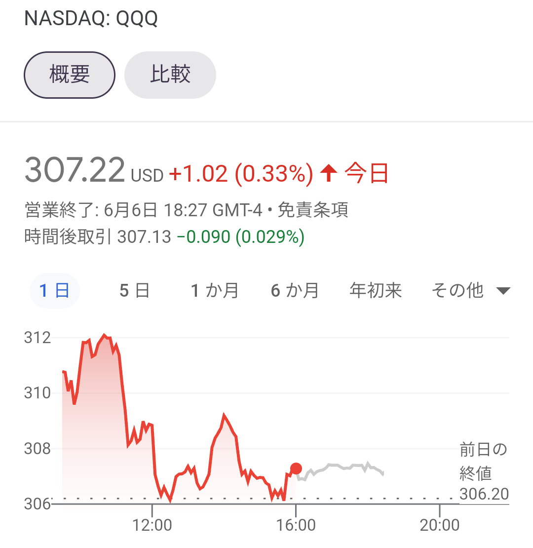 大きな変化がなかったように見えますが、昨夜のQQQの動きはこんな感じでした。