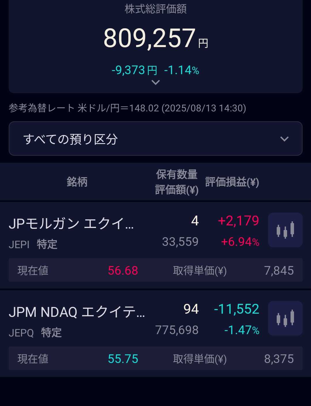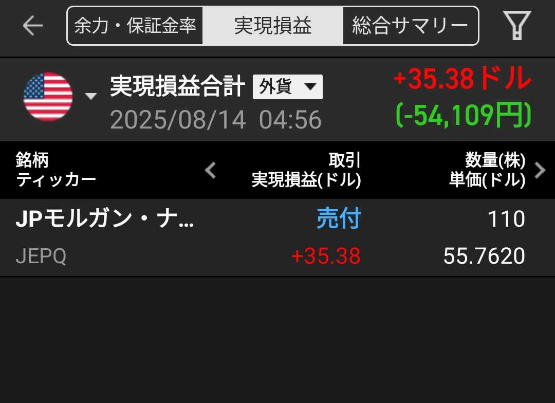 【JEPQ】利金ゲットしたけど損出ししたい… 2025.07.25