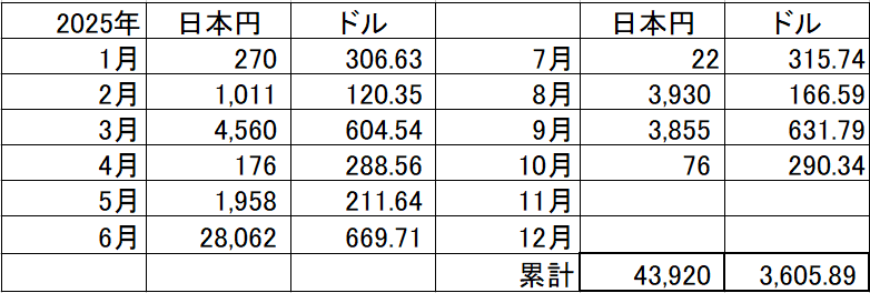 今月の配当金をお知らせ致します。
