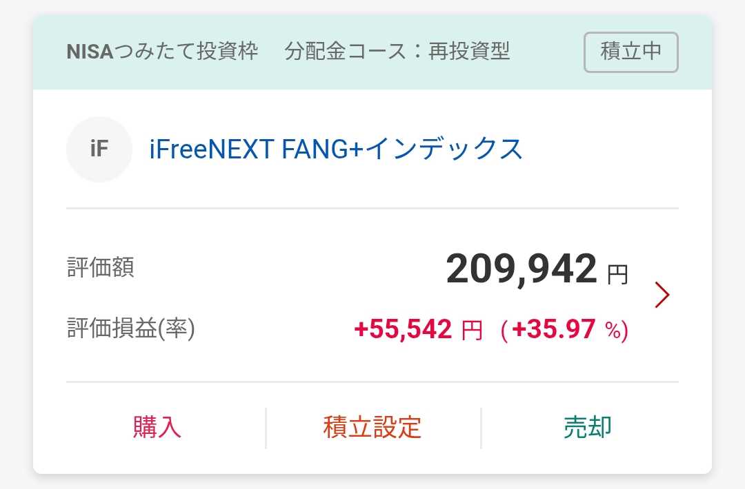 それから1万円程度つみたて投資してるファング+はこんな感じです。