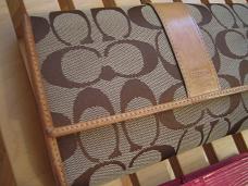 miyomonさんからいただいてきました♪「持ち物バトン」です。1.お財布はどんなものを使っていますか?Coachのシグネチャーシリーズの長財布を使っています。二年前の夏、単身赴任中の夫が一時帰国したときにお土産に買ってきてくれたもの。いかにも「主婦」って感じのお財布です(^^;)コインケースが大きくて使いやすい。大きめなので、小さいものに買いかえようかな~って思案中。色とデザインも、もうちょっと可愛いのにしたい(笑)2.携帯電話はどんなものを使っていますか?3.使っている携帯ストラップは?左が日本で使うケータイ。auでSony製のものです。去年の夏、使ってたケータイが調子悪くなって、急遽機種変しました。本当はグローバルパスポート対応の機種にしたかったんだけど、種類が少なくて・・・日本のケータイは大体1年に一回ぐらいは機種変してます。調子悪くなっちゃうことが多いので。(使い方悪いのかな??)右がアメリカで使ってるケータイ。カメラもついてないので、かなり小さく軽いです。日本にいるときほどケータイ使ってなくて、殆ど外出時の連絡用のみに使用。メールもできるみたいだけど、全く使ってません。ボイスレコーダーにメッセージ入れてくれても、どうやって聞くのか知らないから(調べてない)聞けない(苦笑)通話ができれば充分なので、多分、本帰国までこれを使うと思います。4.手帳は持っていますか?ヴィトンの赤いシステム手帳を使用中。記憶力が年々低下してるので、手帳は必需品。5.バッグはどんなのを使っていますか?ヴィトン、コーチ、MZ WALLACE などなど☆バッグというアイテムに異常に弱い私。。。バッグ、ポーチ、財布など、入れ物系が好きみたいです。すごいブランド好きというわけでもないけど(嫌いじゃないけどね)、ヴィトンにはとりわけ弱い。あのヌメ皮の匂いをかぐと、酔っちゃって、手ぶらではお店を出てこられなくなります(>__