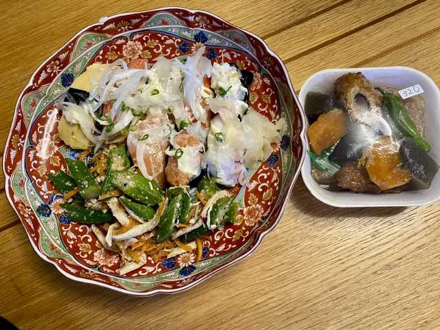 毎日暑いですねほんまに。。。月曜日に不動産屋さんに最後にお会いして今日、名義切り替えが成立着金も確認9月にお願いしてから11か月長いような短いようなこれでやっと移住がほぼ完了ほっとして今日は食事は作らずにお寿司とお惣菜で晩御飯サーモン、たこ、イカ、マグロ、エビ、卵サラダ風握り寿司盛り合わせ30%オフオクラとささみの胡麻和え無地のお皿に盛った方がよかった(^^;)お買い物もちょこっとこの靴下リピートですエジプト綿で気持ちいいキラキラものに弱い(^^;)セールしてましたどんなリフォームされるんかな?不動産屋さんのInstagramチェックしてみよう施工例とかあるかも?
