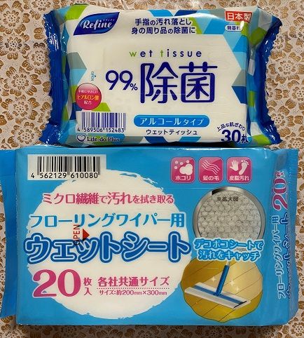 アルコール除菌のウエットティッシュ