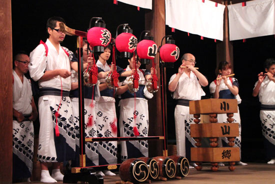 京都では8月中旬から月末の間にあちこちの社寺で六斉念仏が奉納されます。 無形文化財に指定されている京都市北区の小山郷六斉念仏が今夜 上御霊神社に奉納されるので観覧に行きました。幸いな事に夕立が上がって涼しくなり気持ちよく六斉を楽しめました。 太鼓と笛・鉦の合奏を楽しむ四つ太鼓・万歳から猿廻し・祇園太鼓と進み呼び物の「獅子の曲」まで、いかにも土着の民俗芸能らしいゆったりしたテンポの出し物が続き気分はのんびりでした。 獅子の曲だけは獅子が曲芸のあと、獅子に観覧者が頭を噛んでもらい無病息災を授けられます、私も噛んでもらいました。そのあと三重の碁盤の上で逆立ちに、観客から大きな拍手です、更に土蜘蛛が出て来て獅子に糸を吹きつます、しかし獅子は負けず土蜘蛛が逃げて行き、筋書き通りめでたしめでたしとなり皆さん納得の表情でお開きになりました。